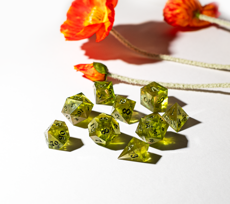 Astral Dice is my line of hand-made, artisan resin dice for tabletop RPGs. Mysterious, dark, enigmatic, luxurious, and unique; the branding evokes all the feelings I aim to stir in my dice and resin art.
